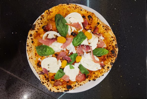 Come impone la tradizione, l'impasto lievitato 72 ore e lavorato a mano utilizzando esclusivamente prodotti di primissima qualità, dal pomodoro alla mozzarella ,dalla vera bufala campana alla deliziosa burrata pugliese.